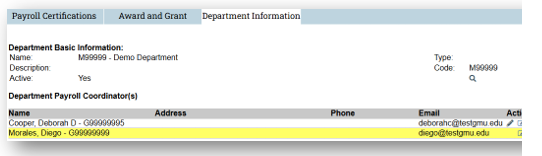 Return to the Department Information tab. The Primary Department Coordinator is now highlighted in yellow.