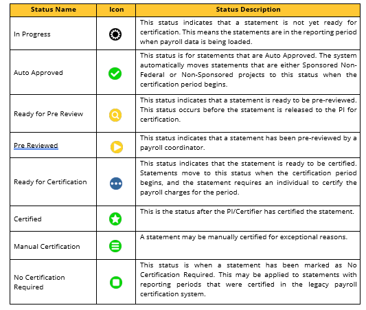 - When the statement is Ready for Certification (this email goes out the day after the Payroll Coordinator completes the Pre Review).