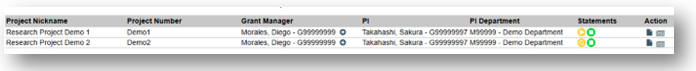 - From the Department Dashboard, all statements show for a Grant on the Project Certifications tab.